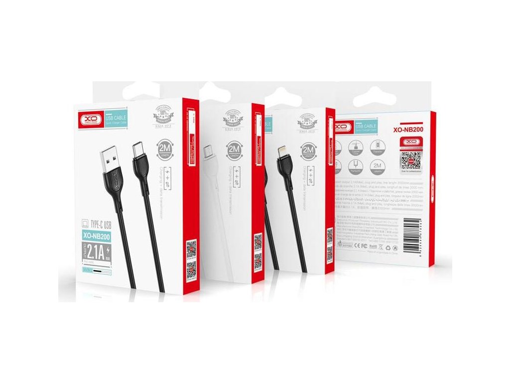 Kabel XO NB200 USB - Lightning 2,0 m 2,1 A černý