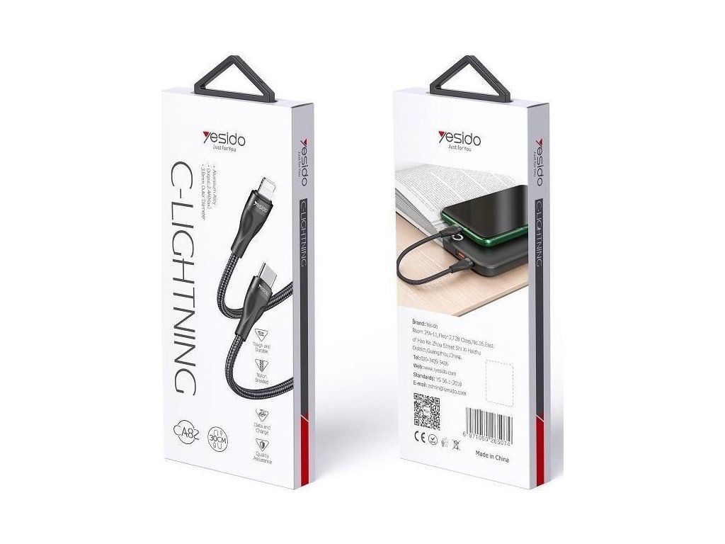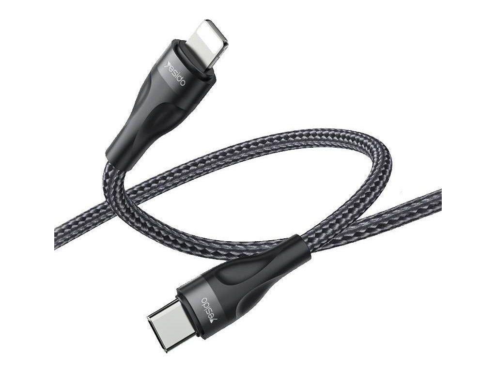 Kabel YESIDO CA82 12W TYPE-C/Lightning 30CM 2,4A Černý