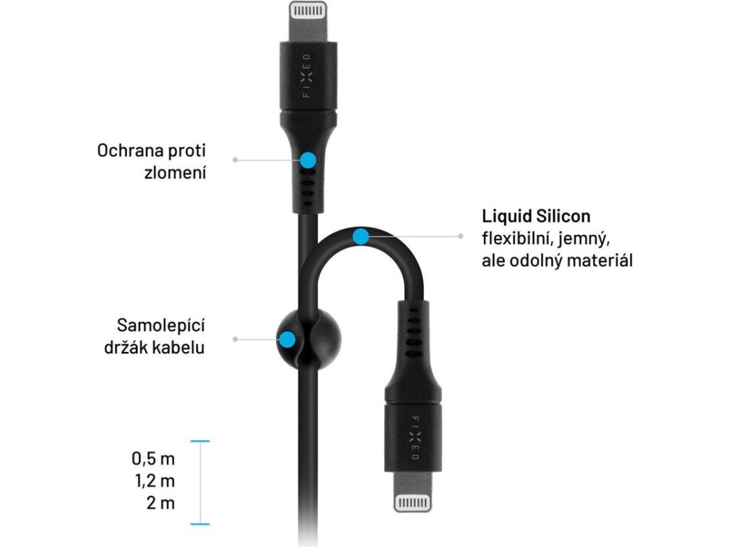 Dátový a nabíjací kábel FIXED Liquid Silicone v praktickej predĺženej verzii s konektormi USB-C a Lightning je ideálnym doplnkom pre vaše Apple zariadenie.