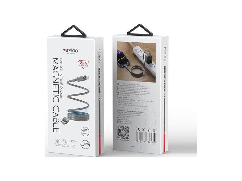 MAGNETICKÝ KABEL YESIDO CA174 12W USB/LIGHTNING 1M 2,4A ŠEDÝ