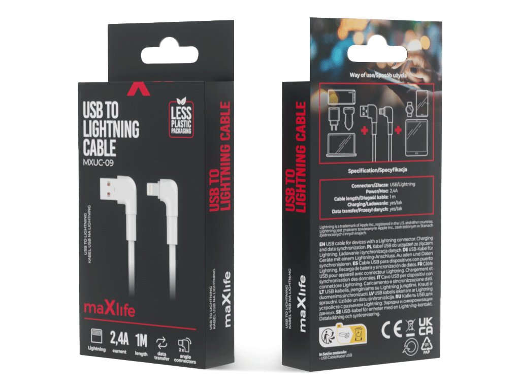 Maxlife MXUC-09 úhlový kabel USB - Lightning 1,0 m 2,4A bílý