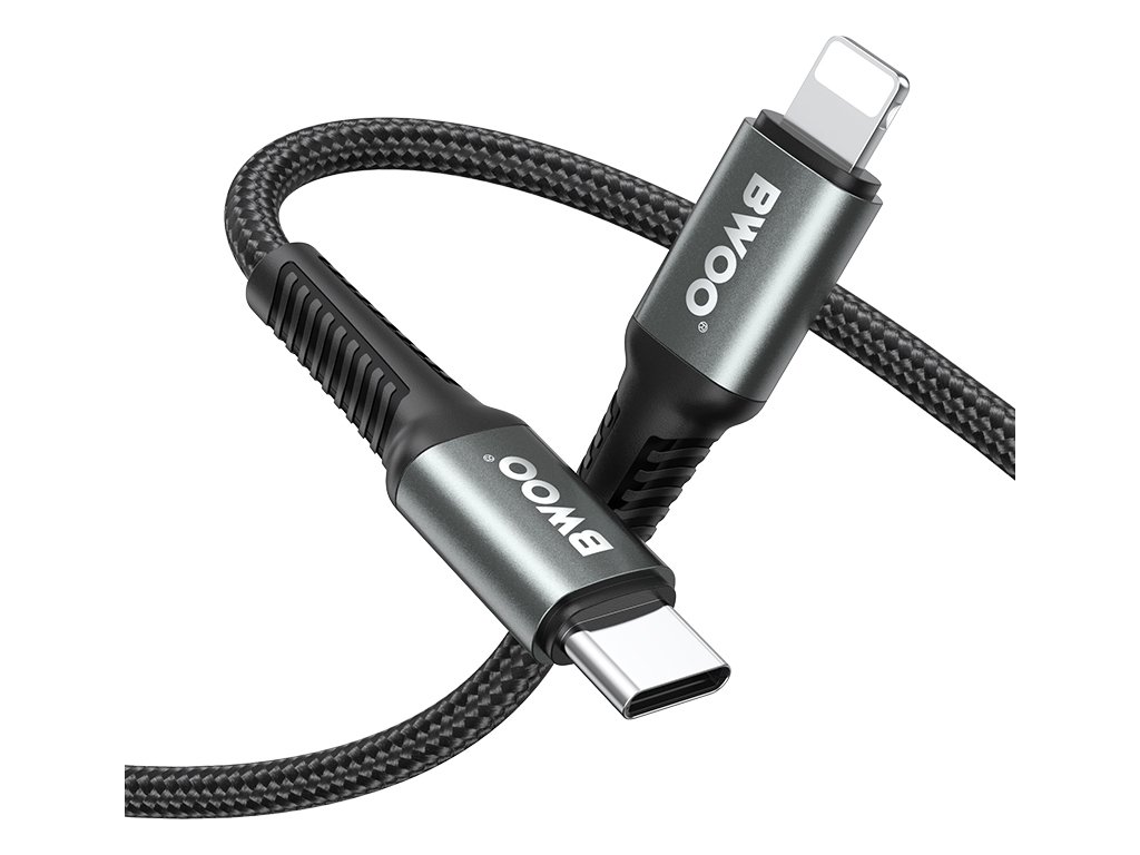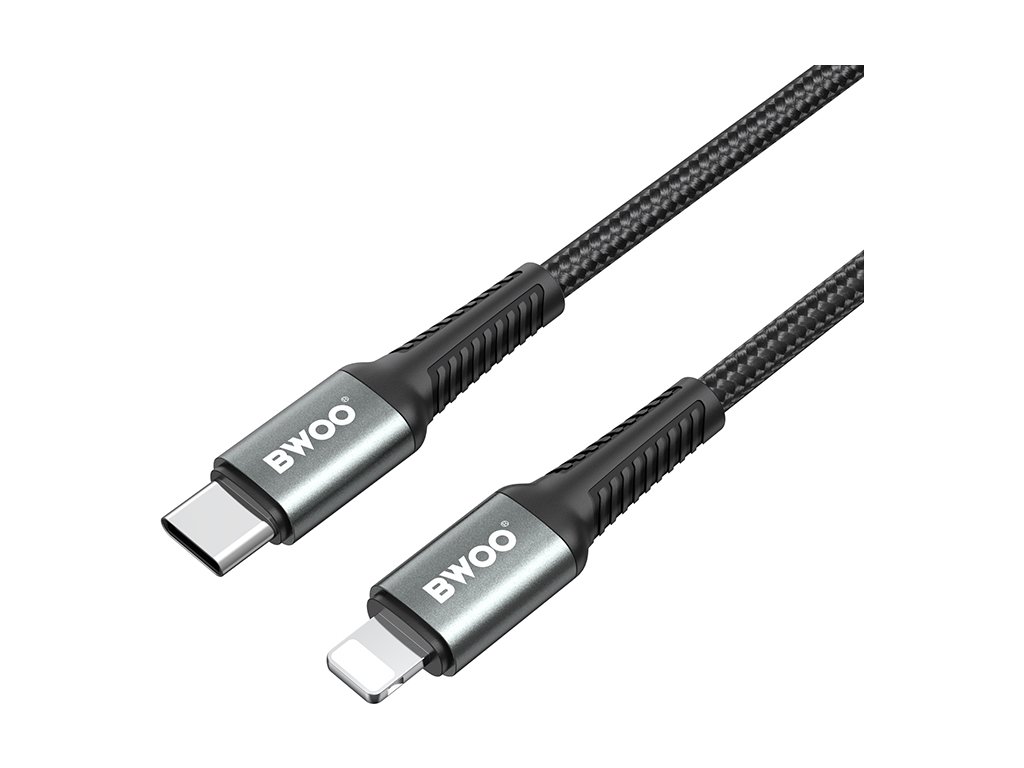Pletený kabel BWOO USB-C - Lightning 2m 30W černý