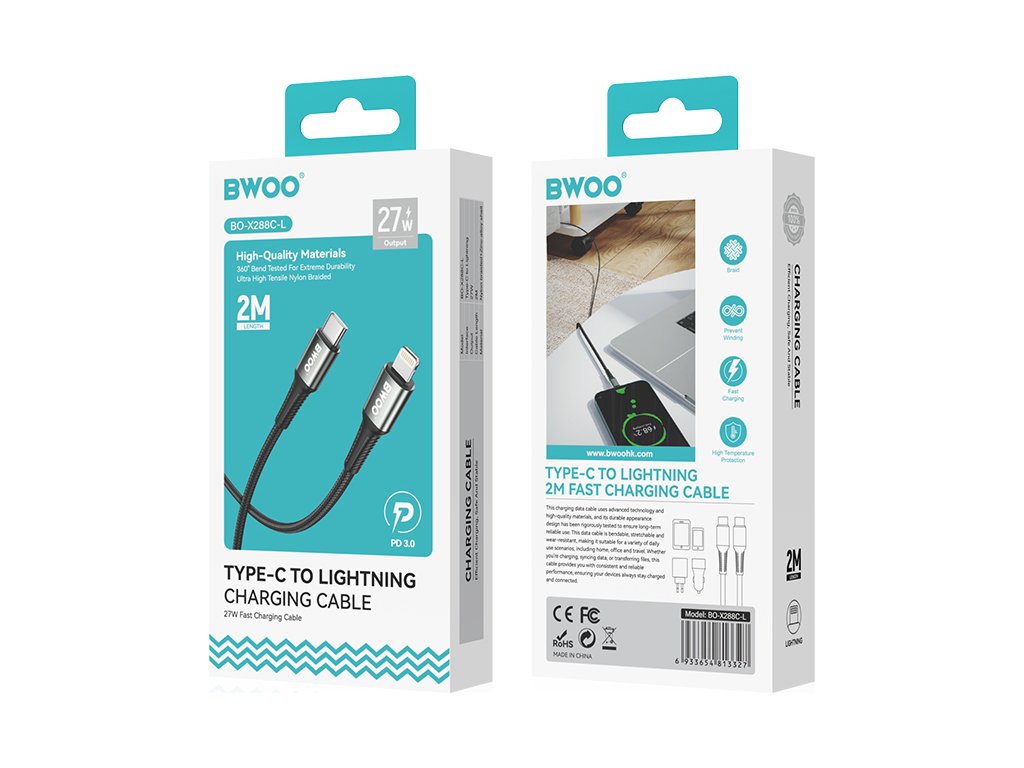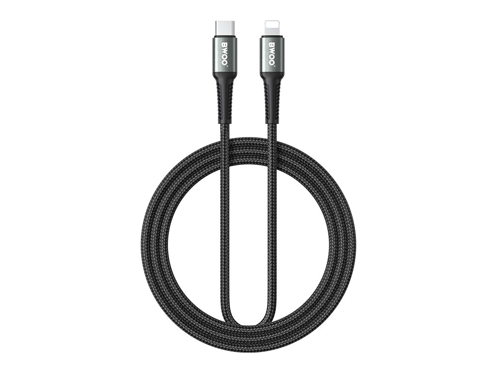 Pletený kabel BWOO USB-C - Lightning 3m 30W černý