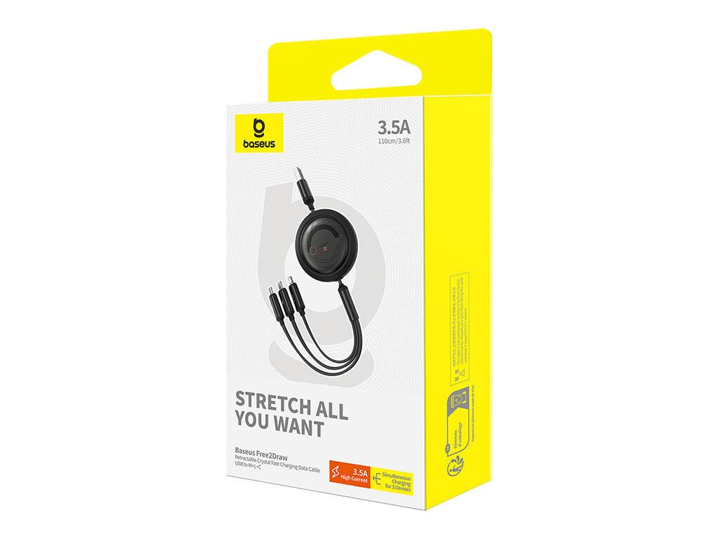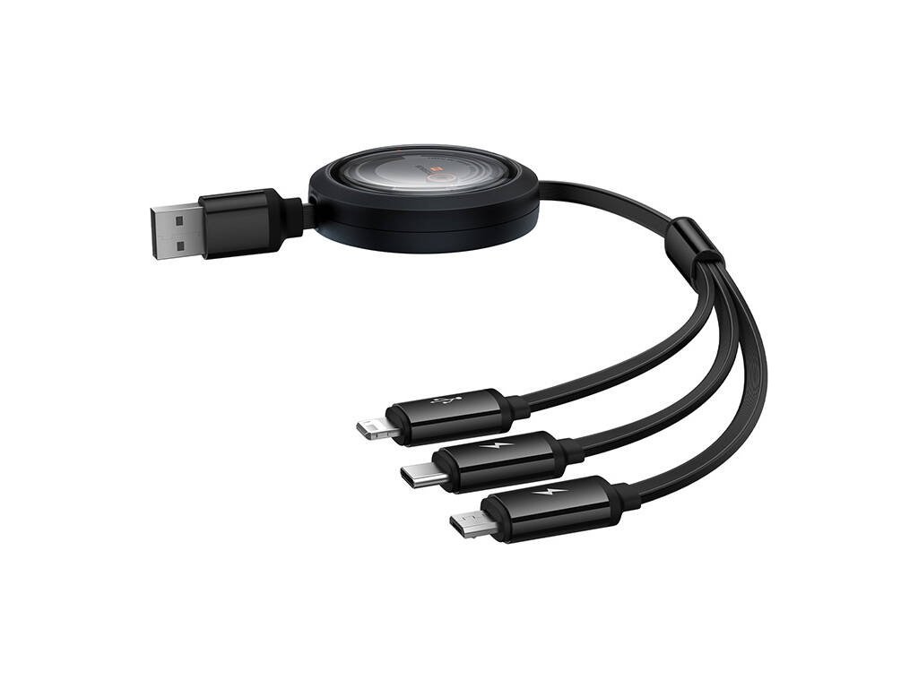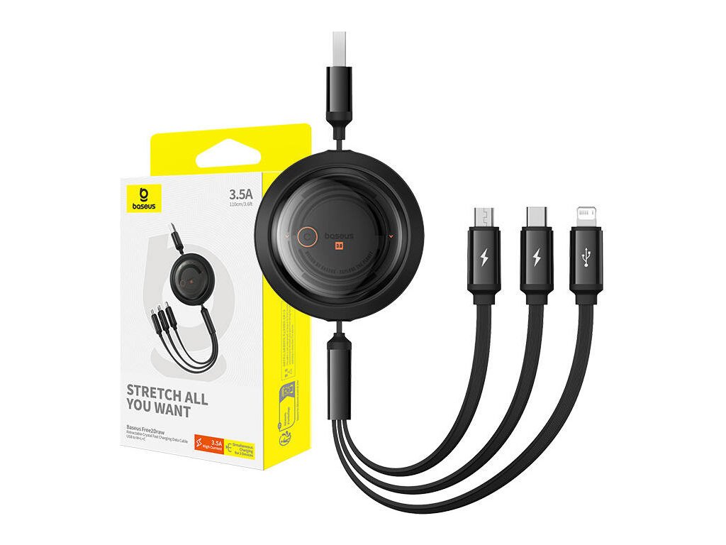 Rychlonabíjecí kabel 3v1 Baseus Free2Draw, USB na micro USB+USB-C+Lightning, 3,5 A, 1,1 m (černý)