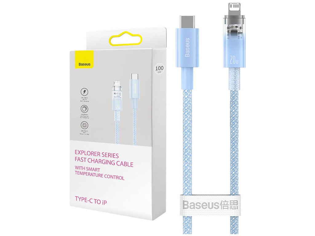 Rýchlonabíjací kábel Baseus USB-C na Lightning Explorer Series 1m, 20W (modrý)
