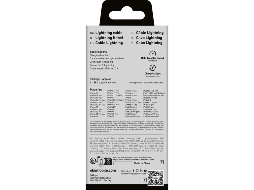 Kabel SBS TECABLEUSBIP589K umožňuje současné nabíjení a přenos dat, takže je ideální pro intenzivní používání. Přenášejte fotografie, videa a dokumenty, aniž byste ztráceli drahocenný čas na oddělené procesy.