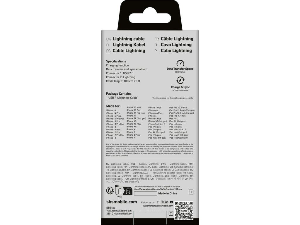 Díky certifikaci MFi splňuje kabel SBS TECABLEUSBIP589W přísné standardy společnosti Apple a zaručuje tak dokonalou kompatibilitu a zabezpečení vašeho zařízení.