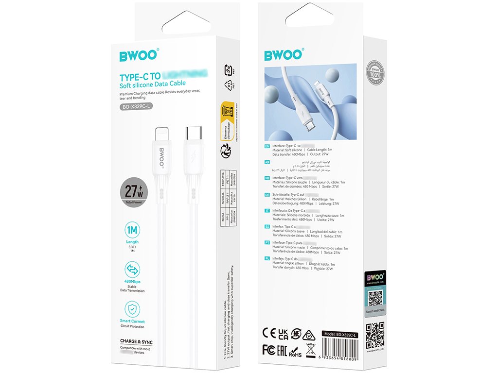 Silikonový kabel BWOO X329CL 27W USB-C - Lightning 1m bílý