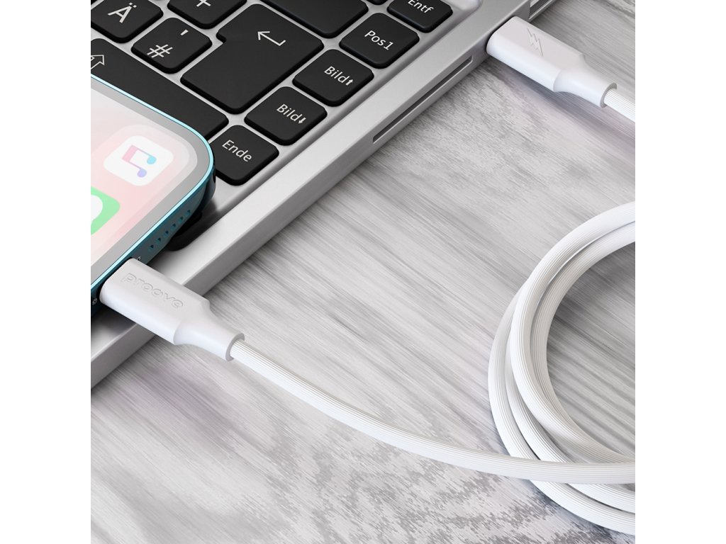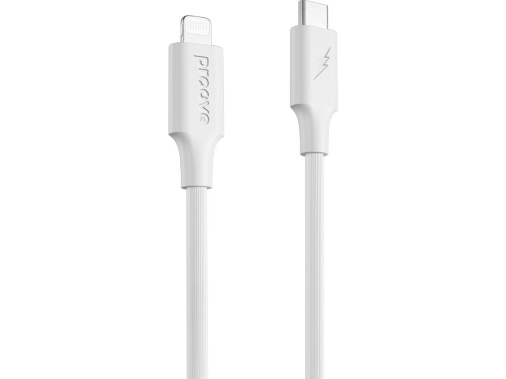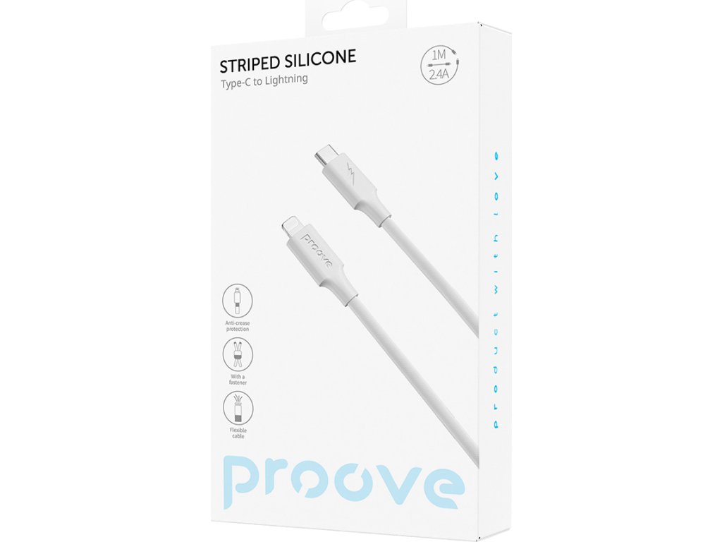 Silikonový kabel Proove USB-C - Lightning, pruhovaný, 1m, 3A, bílý