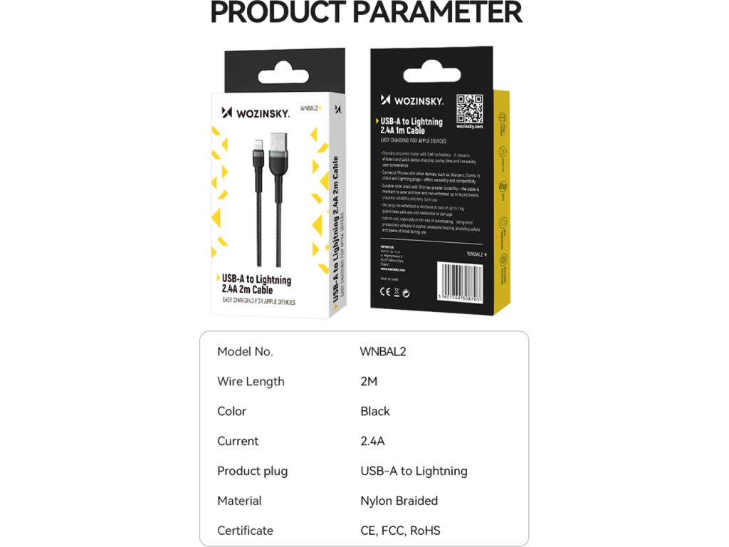 Kabel Wozinsky WNBAL2 nabízí nejen rychlost nabíjení díky proudu až 2,4 A, ale také mimořádnou odolnost a bezpečnost používání. Poskytuje vynikající flexibilitu pro každodenní použití. Zesílený nylonový oplet a odolné konektory USB-A a Lightning zvyšují odolnost kabelu a minimalizují riziko poškození i při intenzivním používání. Bezpečnost je dále zaručena ochranou proti přehřátí, což z něj činí perfektní volbu pro každého uživatele iPhonu.