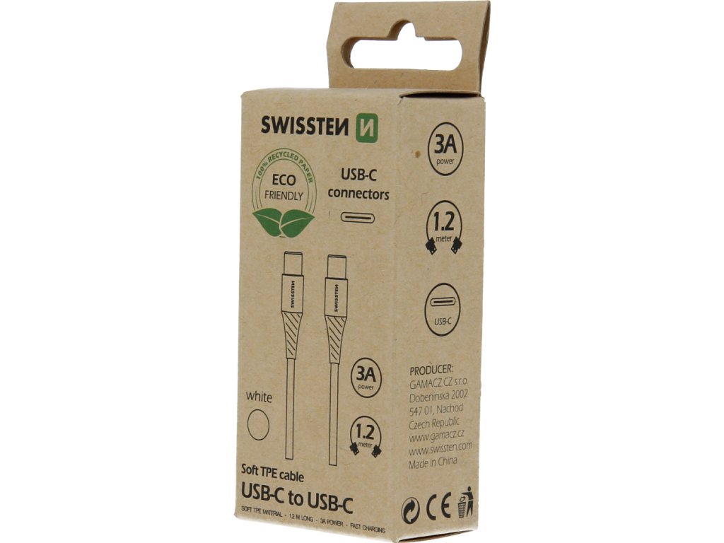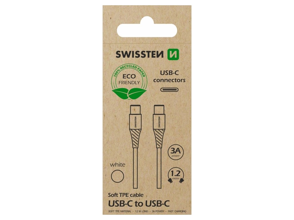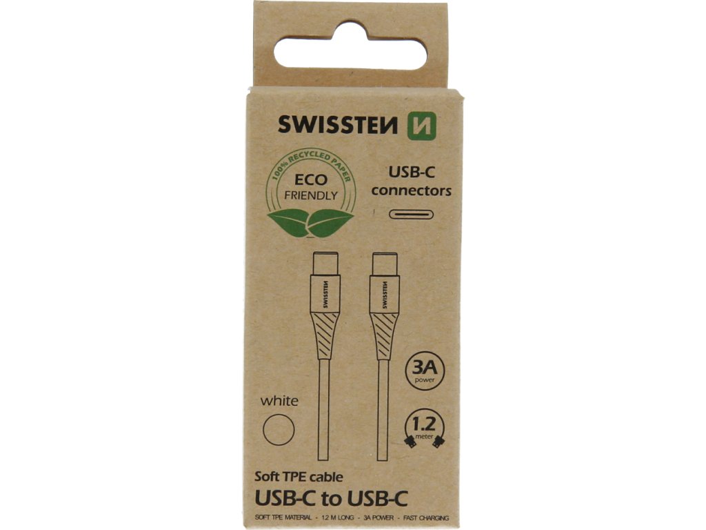 DATOVÝ KABEL SWISSTEN USB-C/USB-C BÍLÝ 1,2M (ECO BALENÍ)