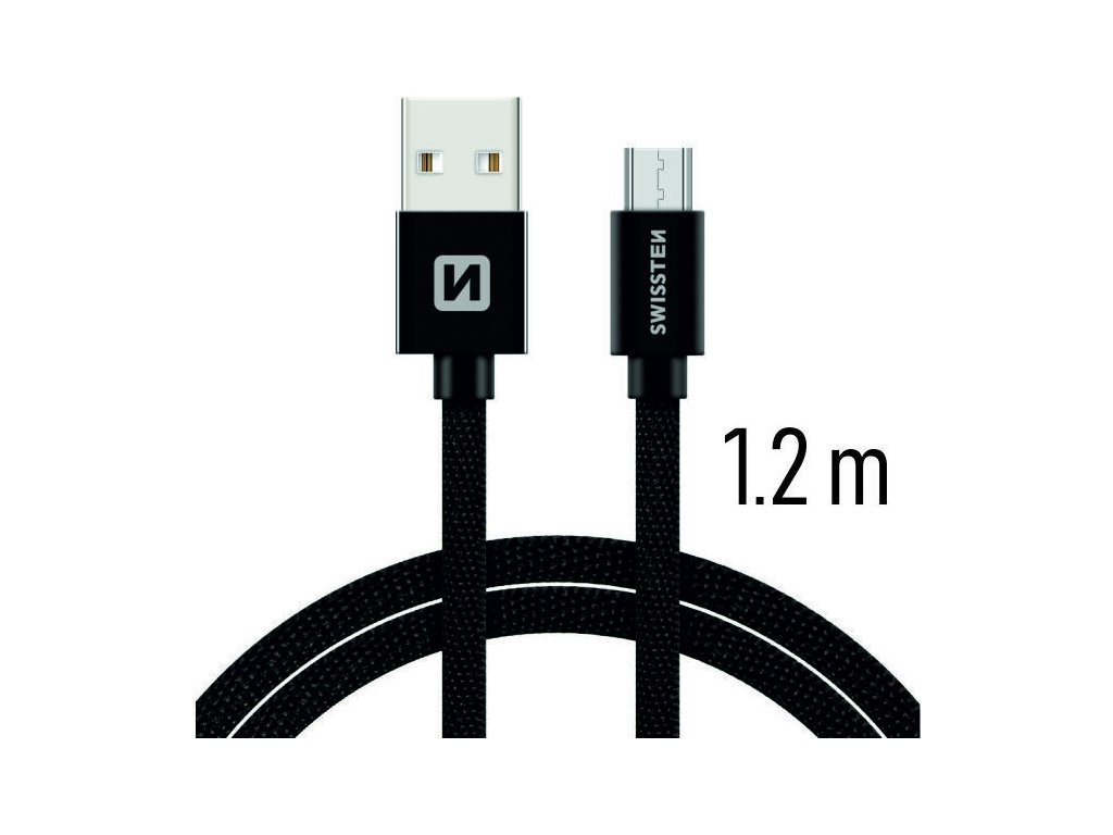 DATOVÝ KABEL SWISSTEN TEXTILE USB / MICRO USB 1,2 M ČERNÝ