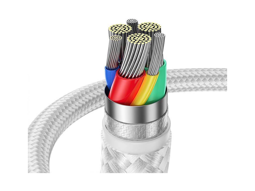 Kabel je vyroben ze špičkových materiálů, proto je tak odolný. Zesílené jádro zajišťuje lepší vodivost a přídavný oplet účinně chrání kabel před poškozením a zamotáním. Co se týče konektorů - byly vytvořeny z jednoho kusu kovu, takže se nezničí a zaručují stabilní připojení k zařízení. Zesílené konce kabelu jsou odolné proti ohýbání, tahání apod. Užijte si plně funkční kabel po dlouhou dobu!