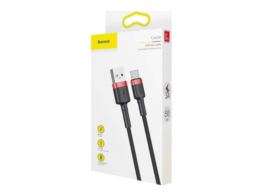 Baseus Cafule je vysoce kvalitní kabel USB typu C určený pro přenos dat a nabíjení zařízení. Zesílená konstrukce zajišťuje zvýšenou odolnost proti přetržení. Navíc byly při konstrukci použity materiály zpevňující strukturu zástrček (např. hliník).
