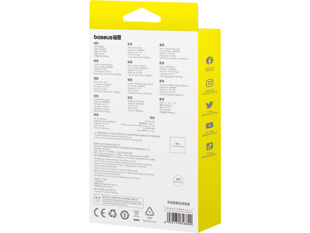 Baseus Superior Series ll cable USB-C - USB-C 30W 480Mb/s 1m - white