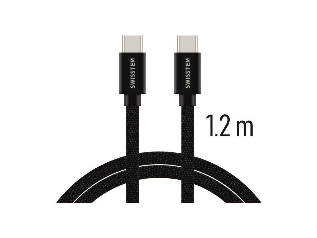 DATOVÝ KABEL SWISSTEN TEXTILE USB-C / USB-C 1,2 M ČERNÝ