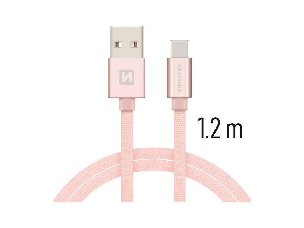 DATOVÝ KABEL SWISSTEN TEXTILE USB / USB-C 1,2 M RŮŽOVO/ZLATÝ