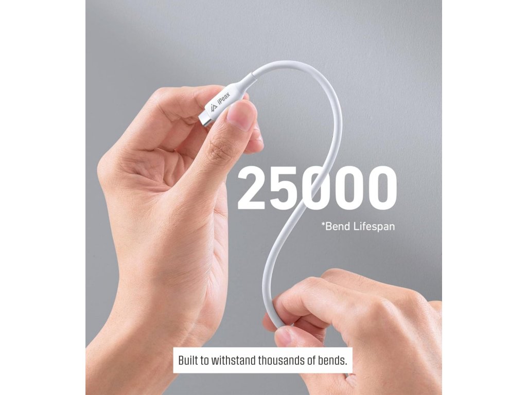 Odolný iPEAX USB-C / USB-C kabel (1,5 m) pro rychlé nabíjení až 60 W a přenos dat přes USB 2.0. Flexibilní TPU materiál odolný proti zalomení i zamotání. Kompatibilní s USB-C zařízeními. Zabaleno v iPEAX balení.