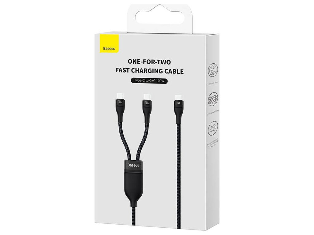 Kabel Baseus Flash Series nabízí 2 konektory USB-C, které umožňují nabíjet 2 zařízení současně. Je kompatibilní s mnoha zařízeními od oblíbených výrobců, jako jsou Huawei, Xiaomi, Samsung, Apple, Lenovo, Dell, HP a herní konzole Nintendo Switch.