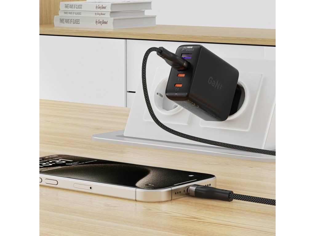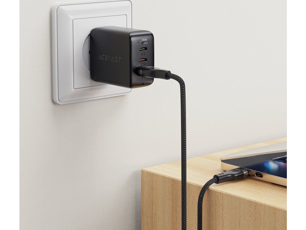 Nástěnná nabíječka Acefast A29 PD 50W GaN 2x USB-C (černá) Užijte si možnost rychlého nabíjení 2 zařízení současně.