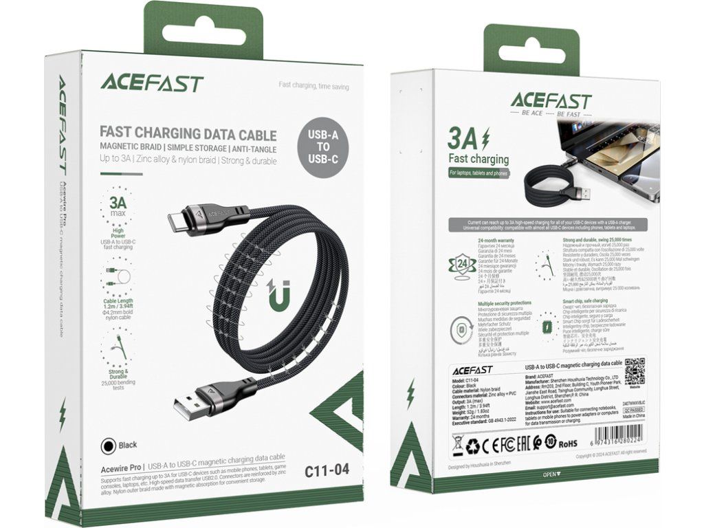 Kabel Acefast C11-04 USB-A - USB-C 3A 1,2m s magnetickým opletením - černý