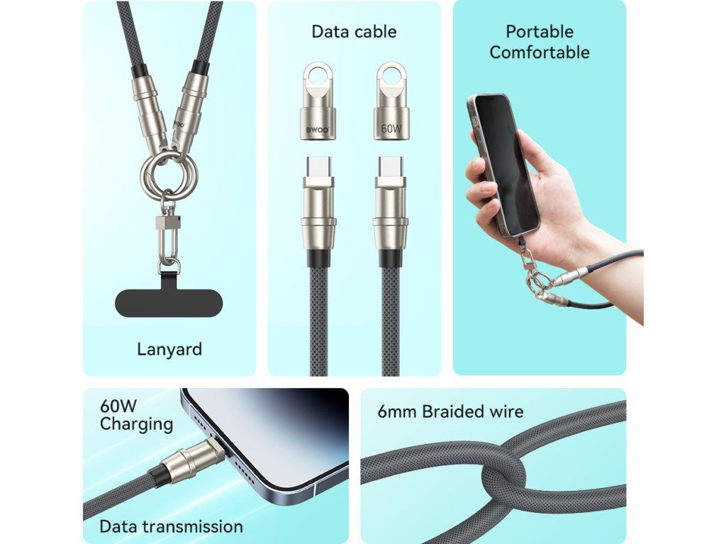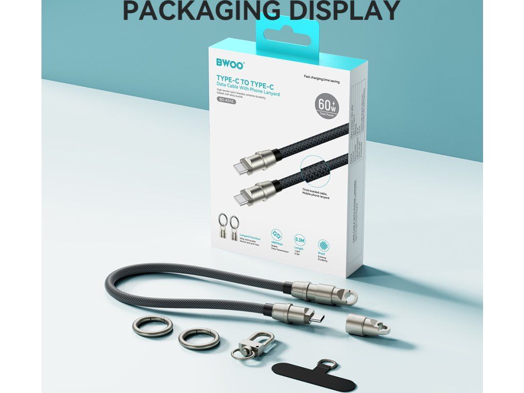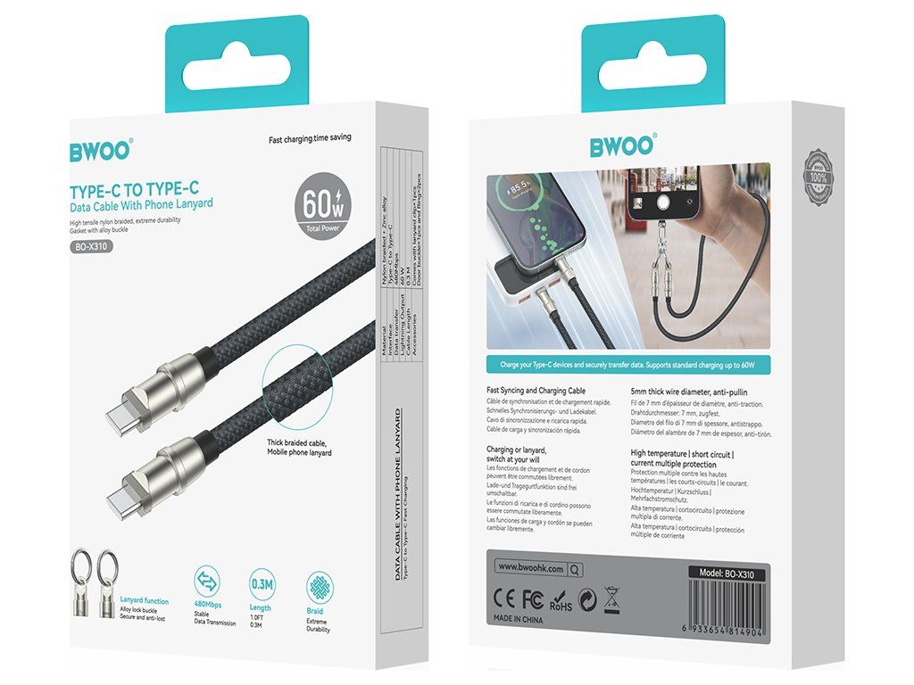 Kabel BWOO Lanyard USB-C - USB-C 0,3m 60W s poutkem
