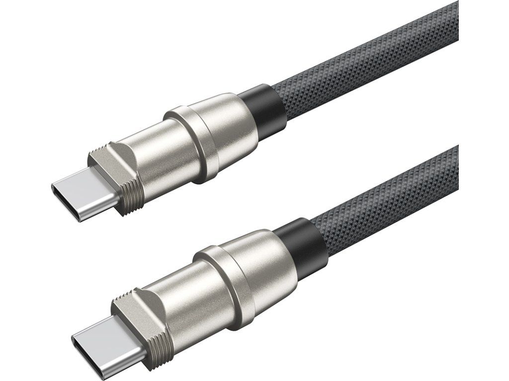Kabel USB-C na USB-C s nylonovým opletením kombinuje odolnost s vysokým výkonem a nabízí solidní délku 2 metry, což zajišťuje všestranné využití.