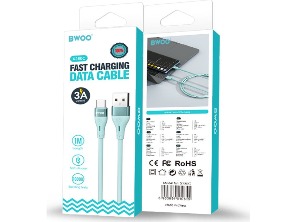 Kabel BWOO USB - USB-C 1m 3A Minimalistický silikonový bílý X280C