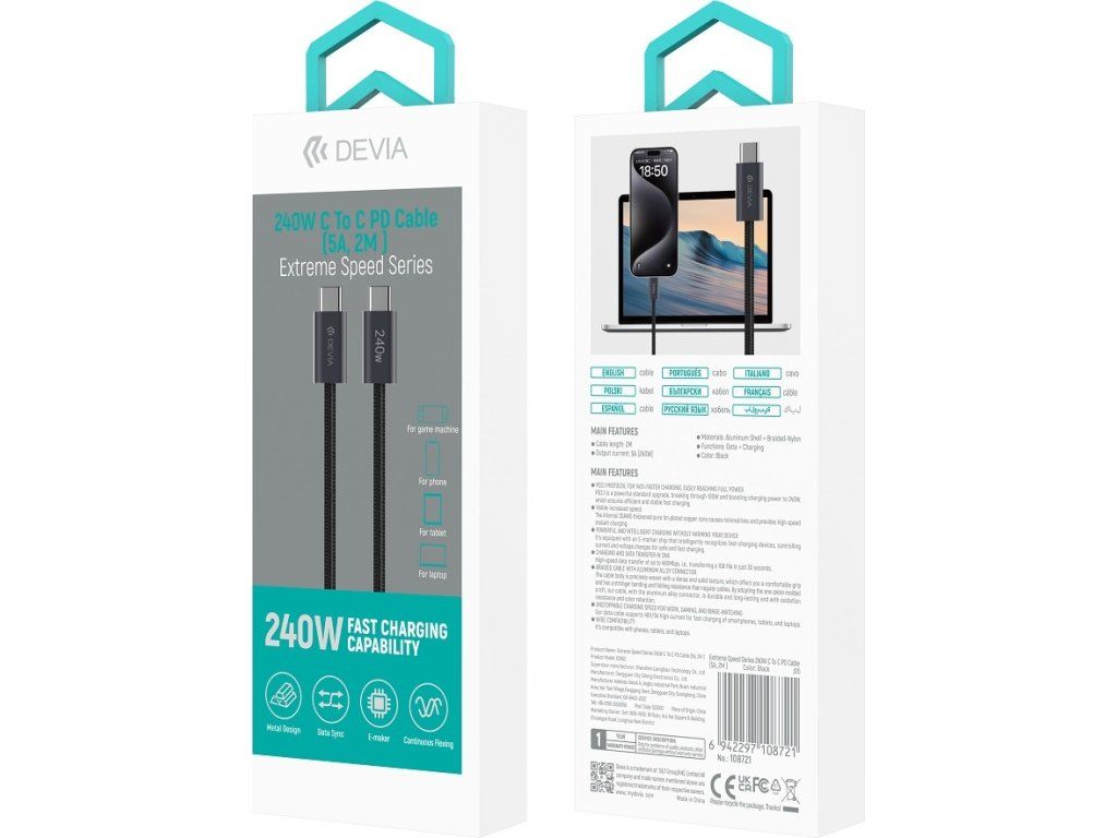 Devia Ultra3 je moderní USB-C kabel určený pro nejrychlejší a nejbezpečnější nabíjení zařízení nové generace.