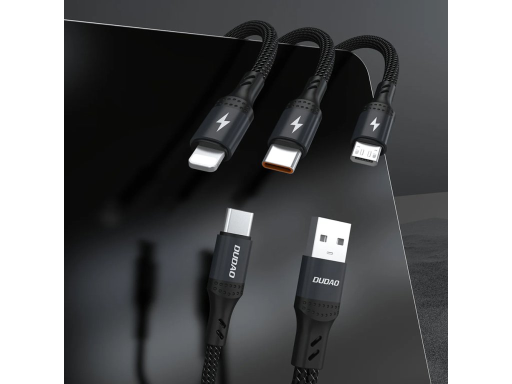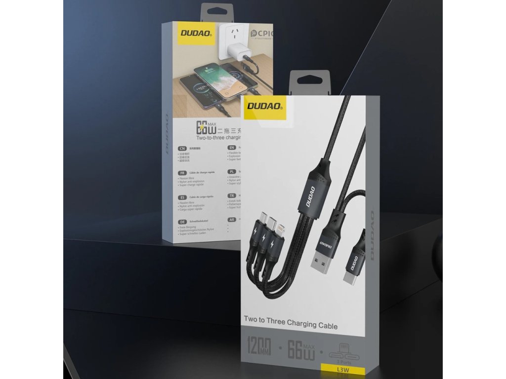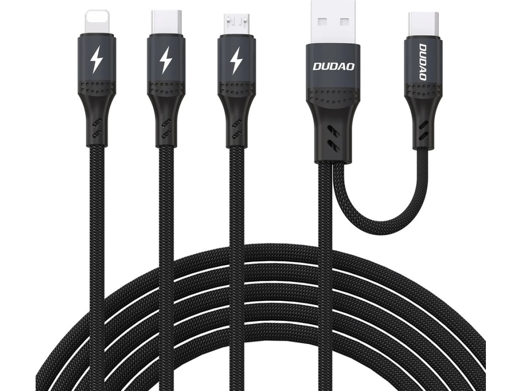 Kabel Dudao L3W USB-A/USB-C na Lightning/USB-C/MicroUSB 66W - černý