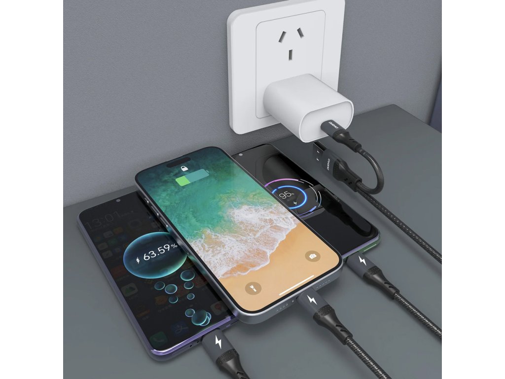 Vysoký výkon až 66 W umožňuje rychlé nabíjení telefonů, tabletů a notebooků. Kabel podporuje protokoly PD, QC, SCP a FCP.