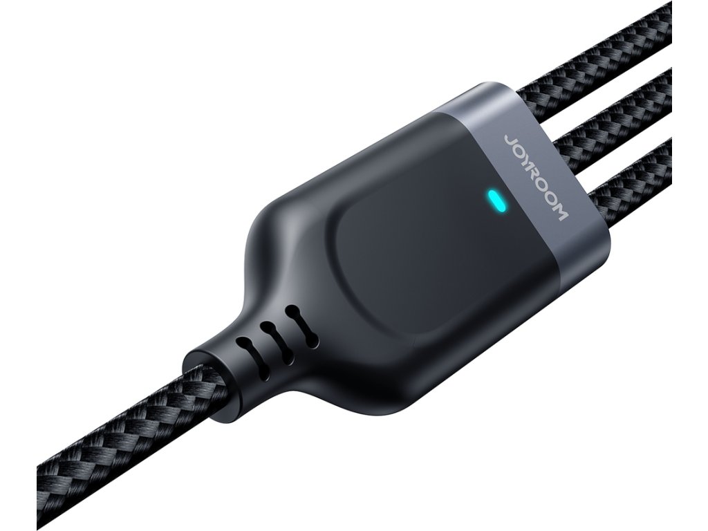 Objevte svobodu a pohodlí používání kabelu Joyroom Multi-Use Series S-A18, který kombinuje rychlost, odolnost a všestrannost. Nabíjejte 3 zařízení současně, užijte si stabilní a bezpečný proces nabíjení a také odolnost proti opotřebení – díky precizně vyrobené konstrukci. Vestavěná LED dioda vás informuje, kdy kabel přenáší data nebo napájí připojené zařízení.