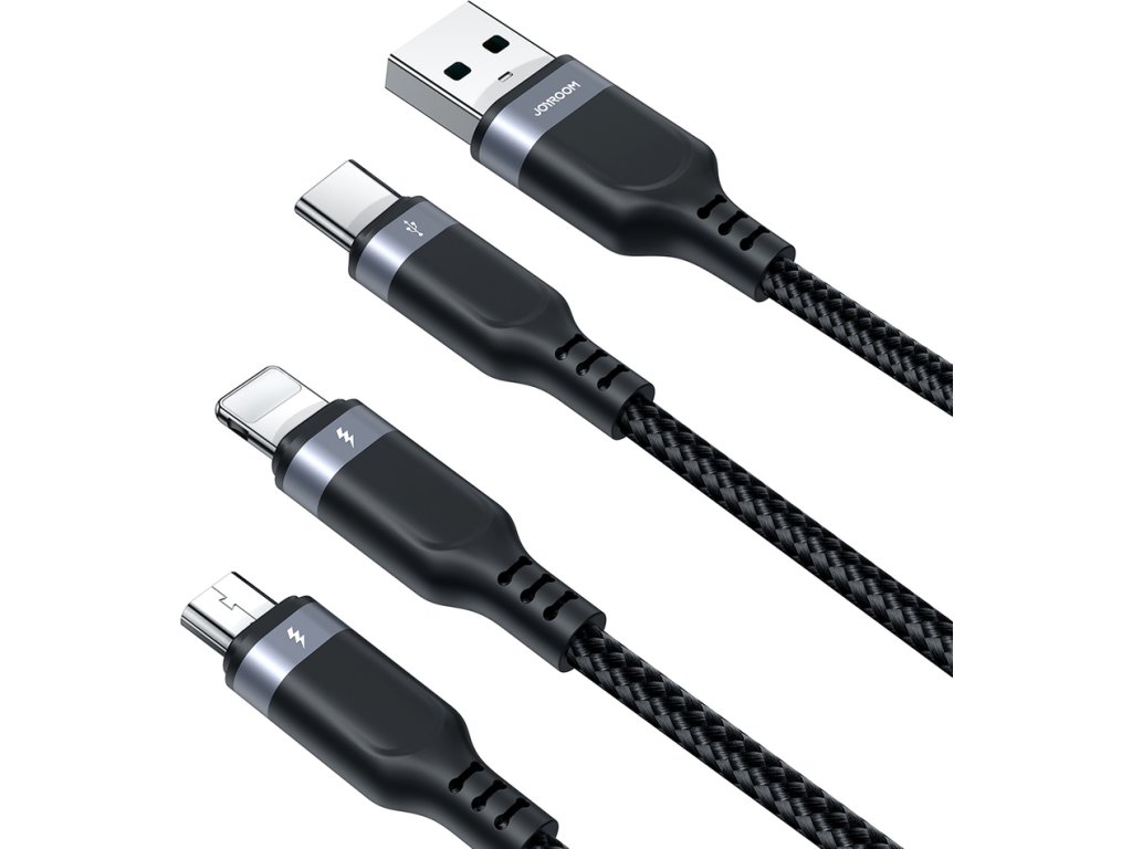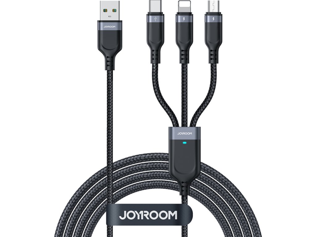 Kabel Joyroom Multi-Use Series S-A18 umožňuje nabíjet tři zařízení současně, čímž eliminuje nutnost používat více kabelů. Je ideální na cesty, do kanceláře nebo domů a nabízí funkčnost a pohodlí v každé situaci.