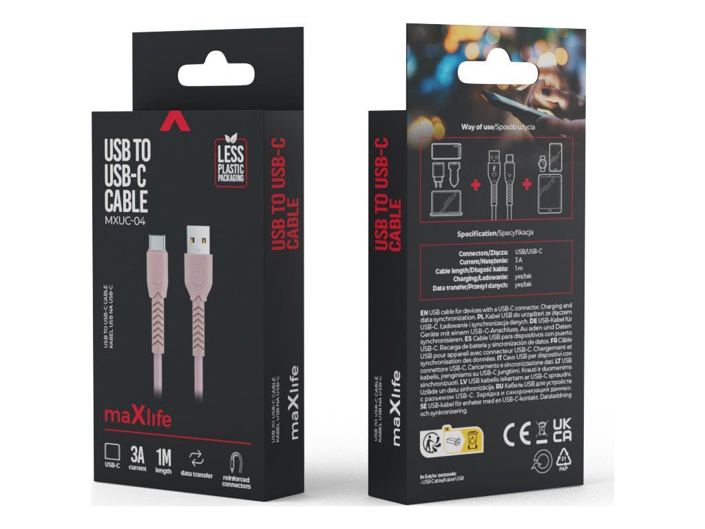 Kabel Maxlife MXUC-04 USB - USB-C 1,0 m 3A růžový
