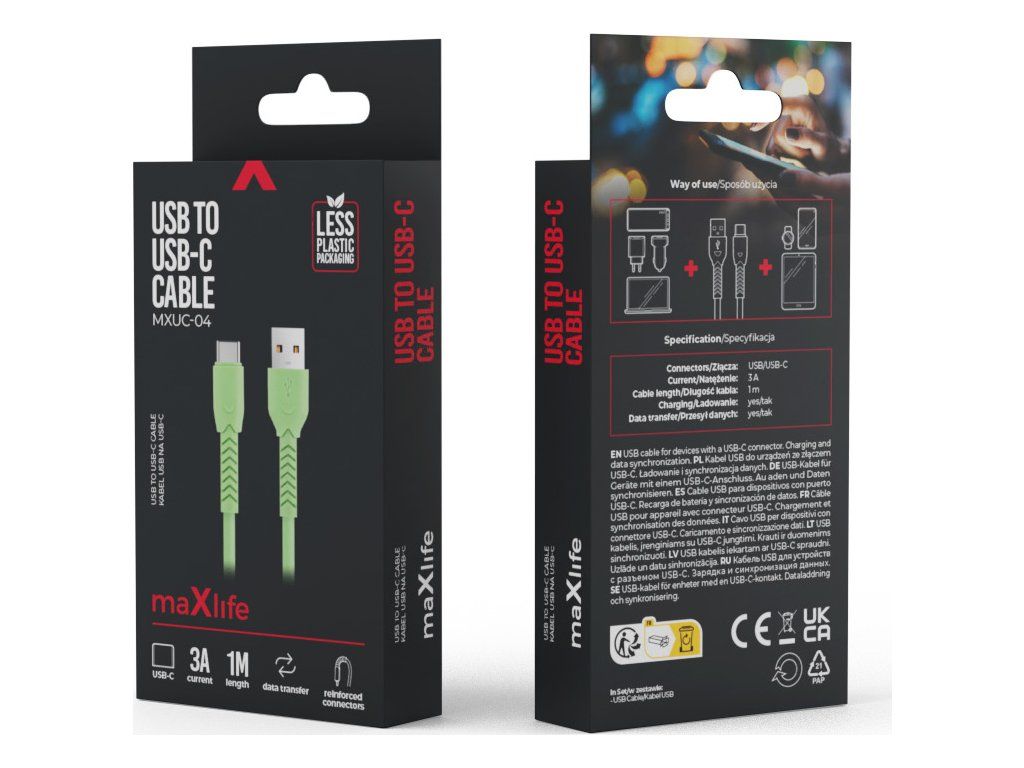 Kabel Maxlife MXUC-04 USB - USB-C 1,0 m 3A zelený