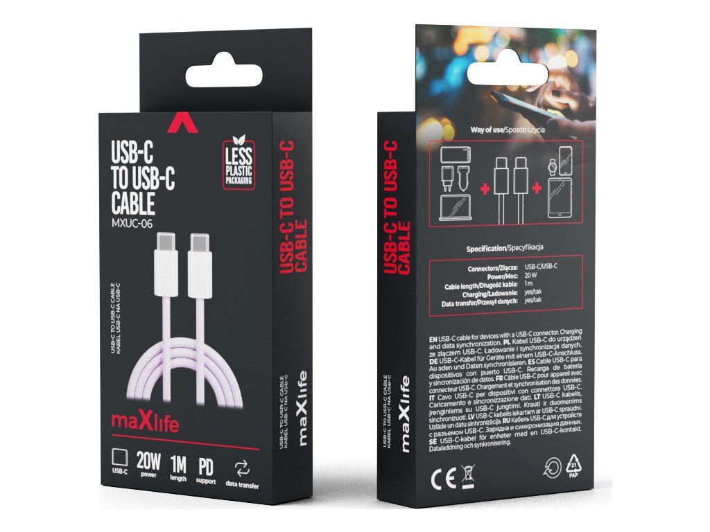 Kabel Maxlife MXUC-06 USB-C - USB-C 1,0 m 20W fialový nylon