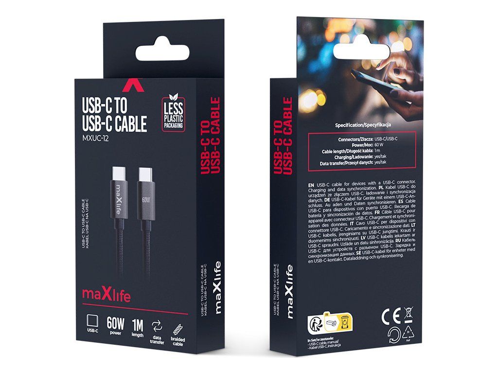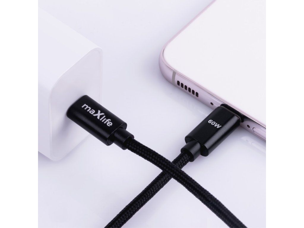 Kabel Maxlife MXUC-12 USB-C - USB-C 1,0 m 60W černý