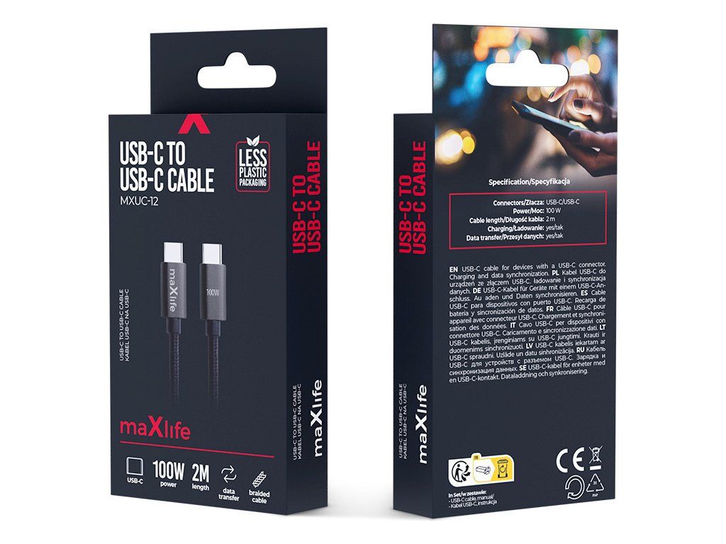 Kabel Maxlife MXUC-12 USB-C - USB-C 2,0 m 100W černý