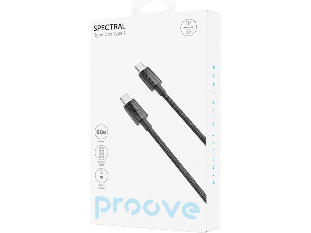 Kabel Proove Spectral USB-C - USB-C 1m 3A černý