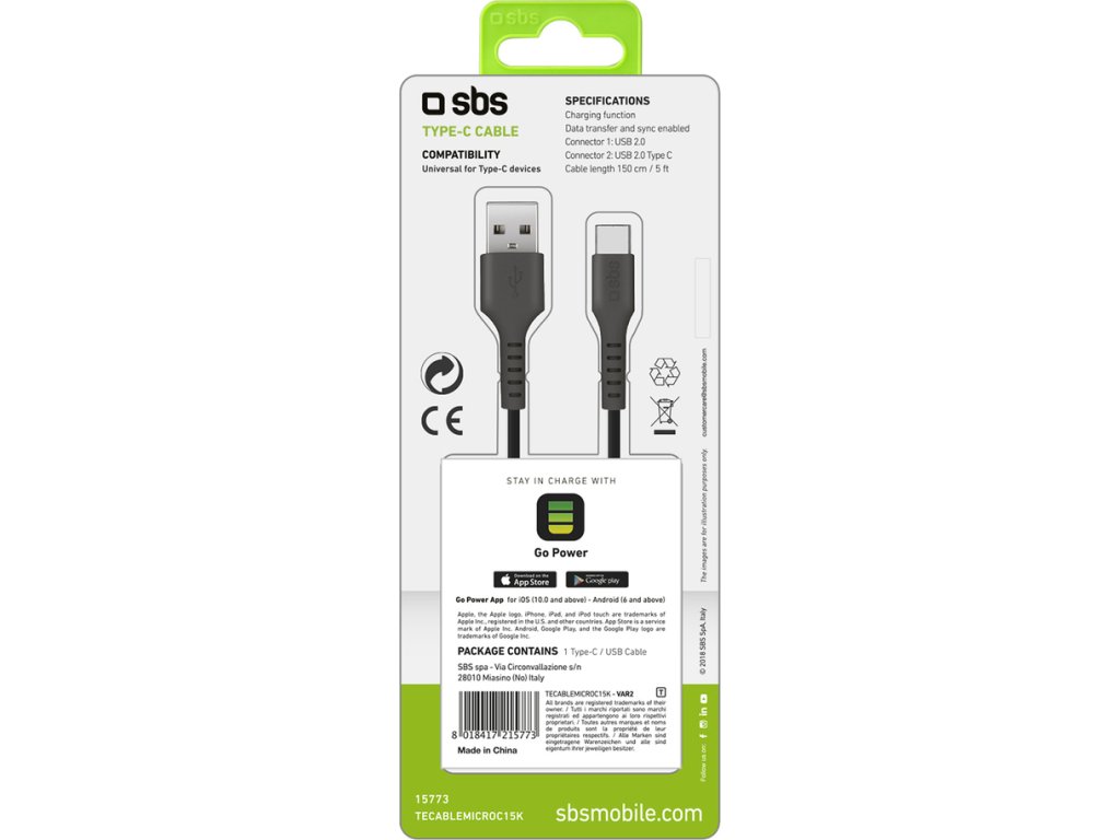 Kabel SBS TECABLEMICROC15K USB-A - USB-C 1,5 m - černý