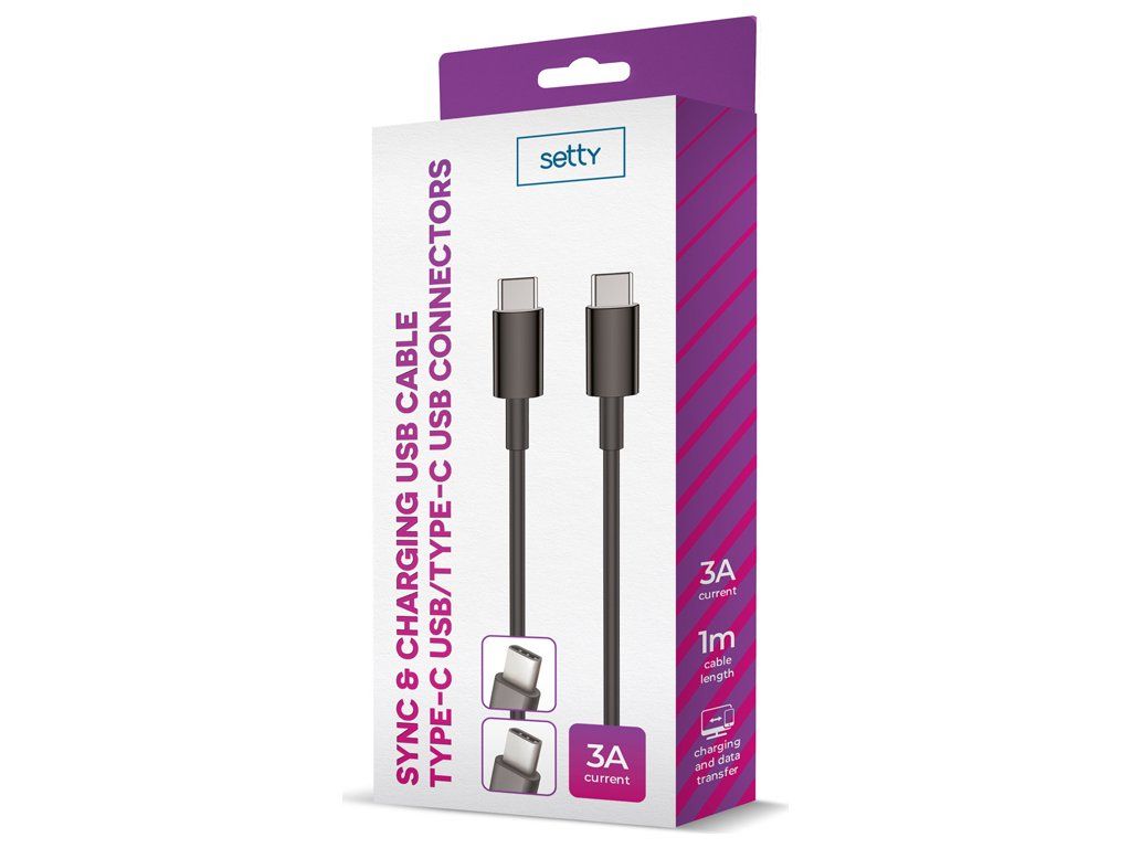 Kabel Setty USB-C - USB-C 1,0 m 3A černý