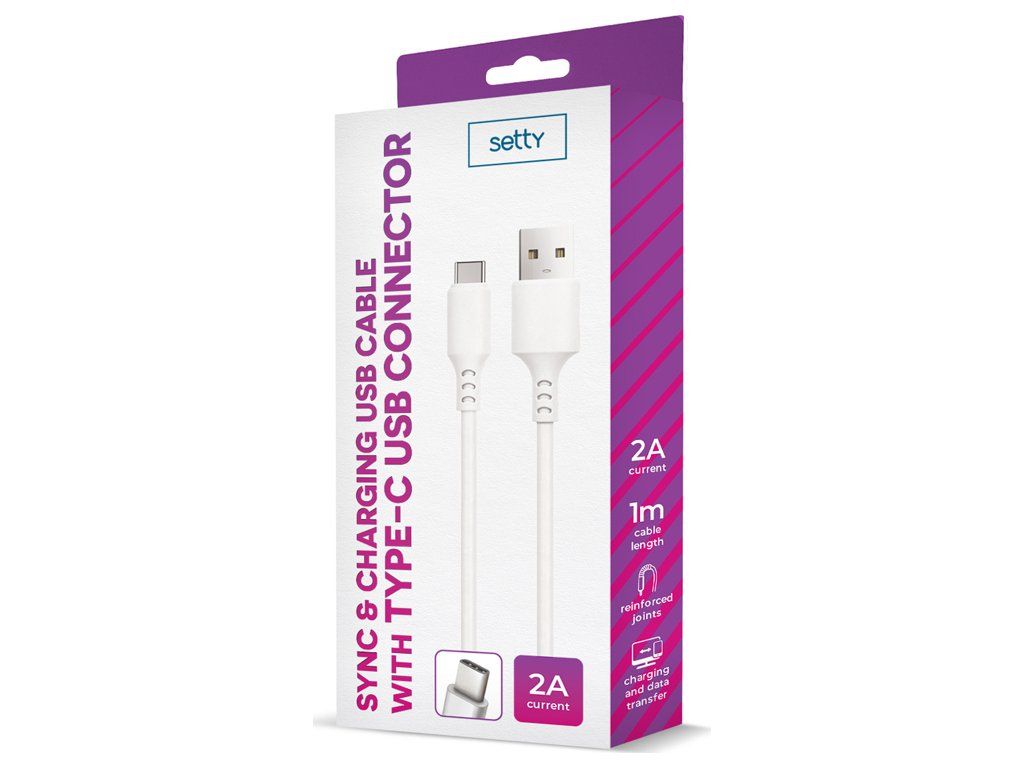 Kabel Setty USB - USB-C 1,0 m 2A bílý