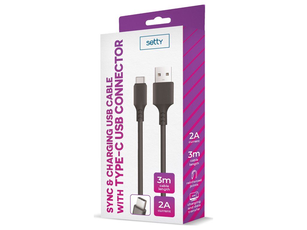 Kabel Setty USB - USB-C 3,0 m 2A černý