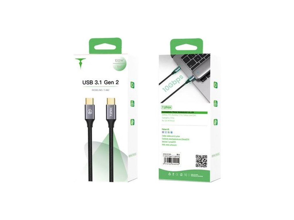 Kabel T-PHOX FENCING USB-C/USB-C 20V/5A (100W)/USB3,1/10Gbps/4K/1M ČERNÁ