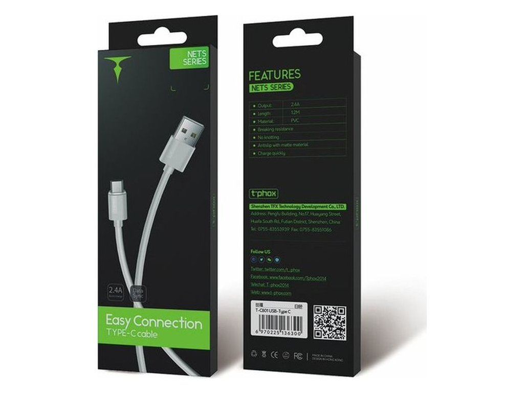 KABEL T-PHOX NETS TYP-C BÍLÝ 3A ; PVC ; 1,2M