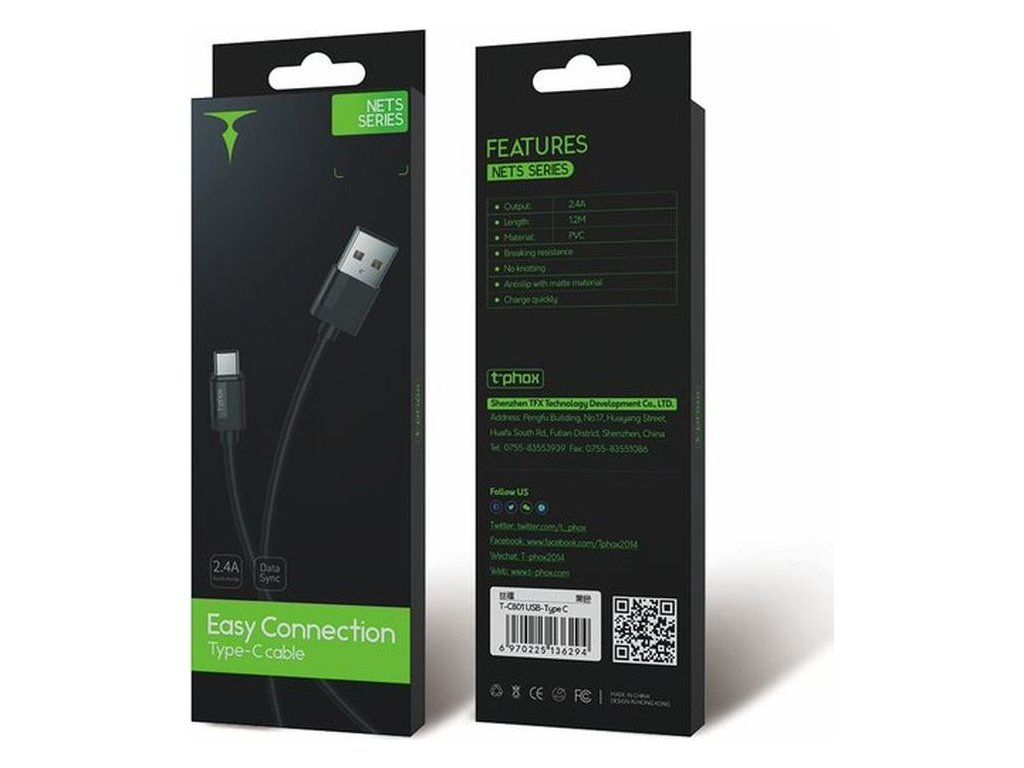 KABEL T-PHOX NETS TYP-C ČERNÝ 3A ; PVC ; 2M