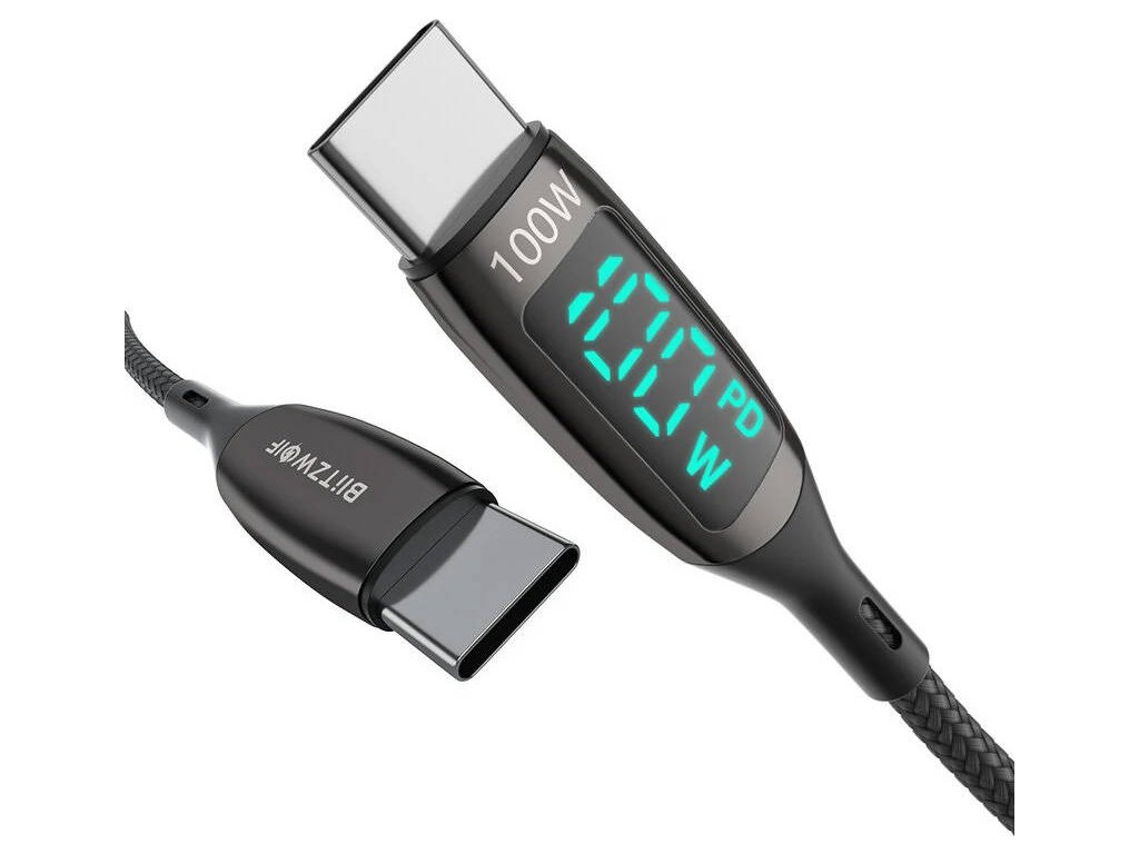 Kábel USB-C na USB-C BlitzWolf BW-TC23, s displejom, 100 W, 1,8 m (čierny)