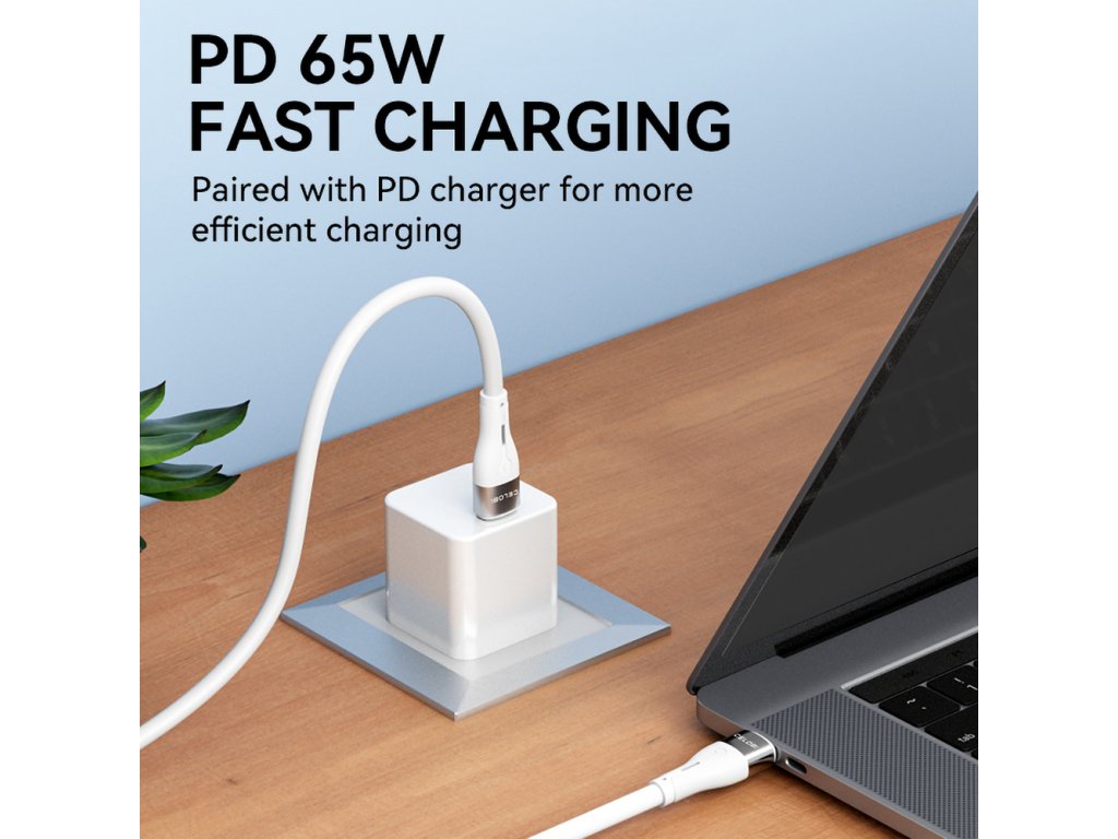 - Zajišťuje rychlé nabíjení zařízení. Kabel je kompatibilní s technologií Power Delivery 65W.