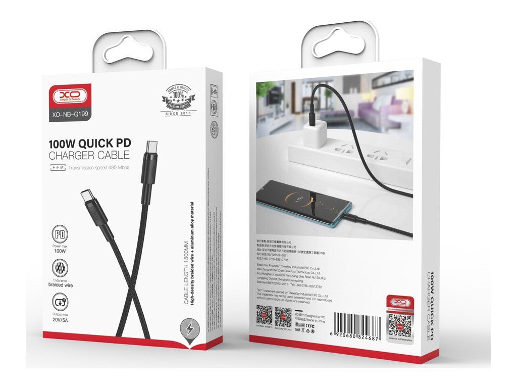 Kabel XO NB-Q199 PD USB-C - USB-C 1,5m 100W černý