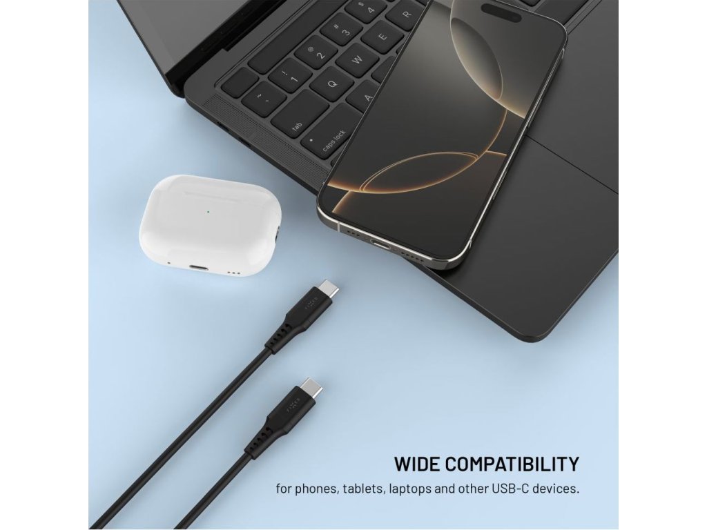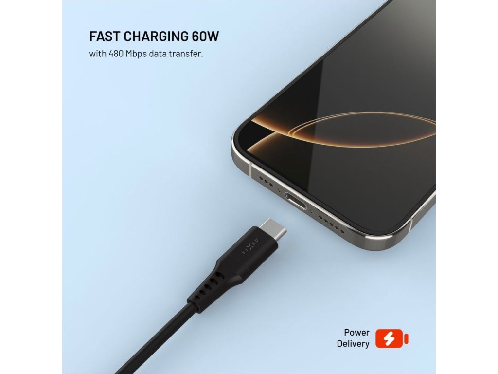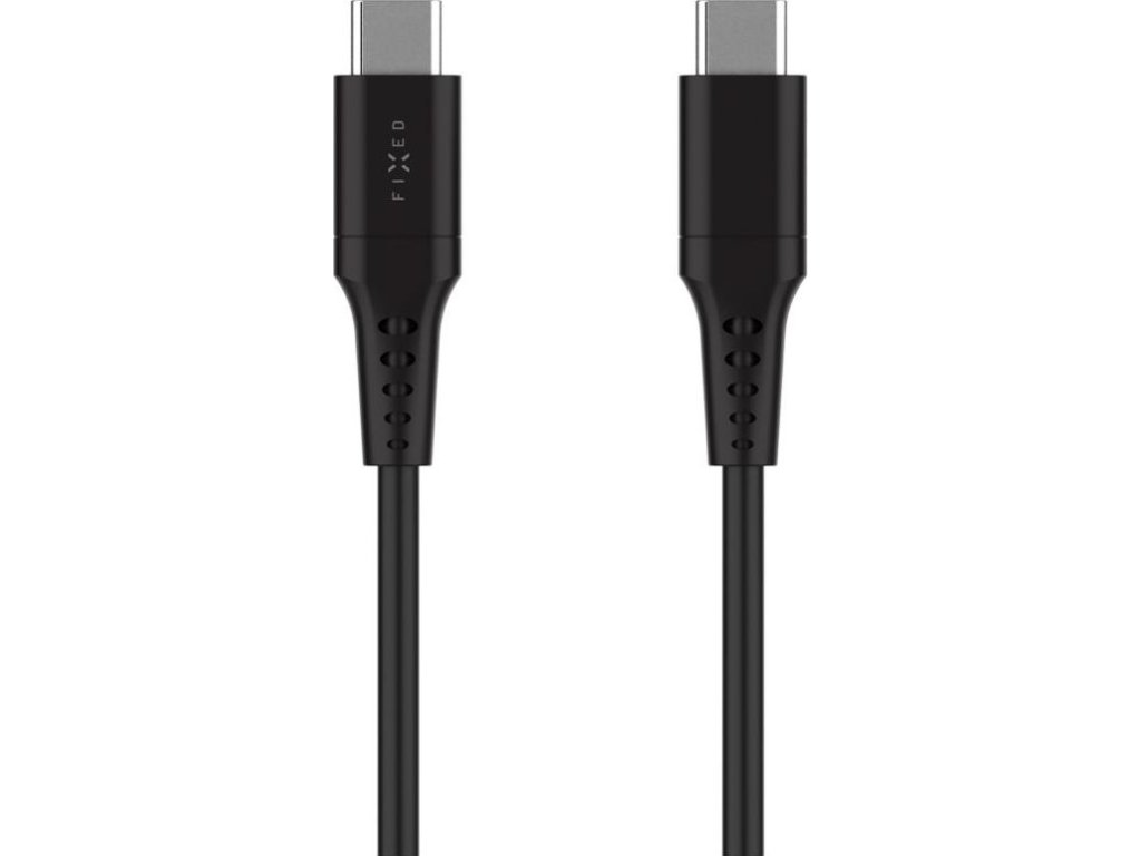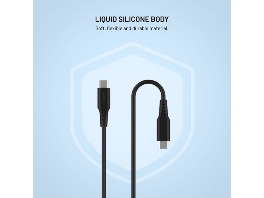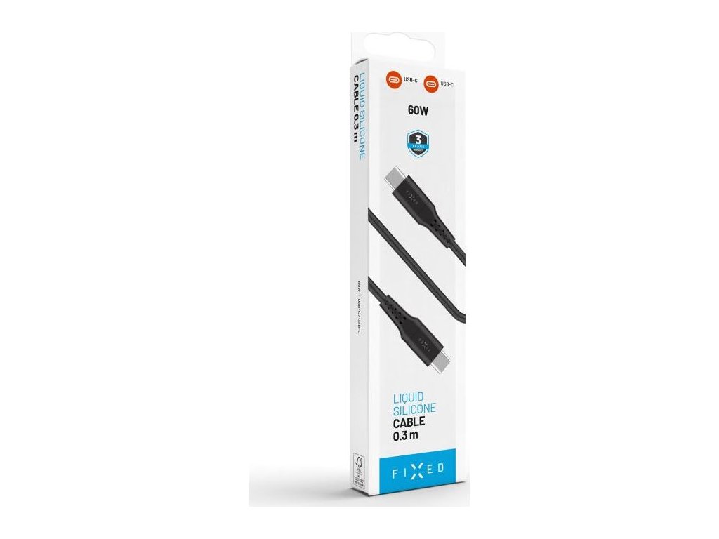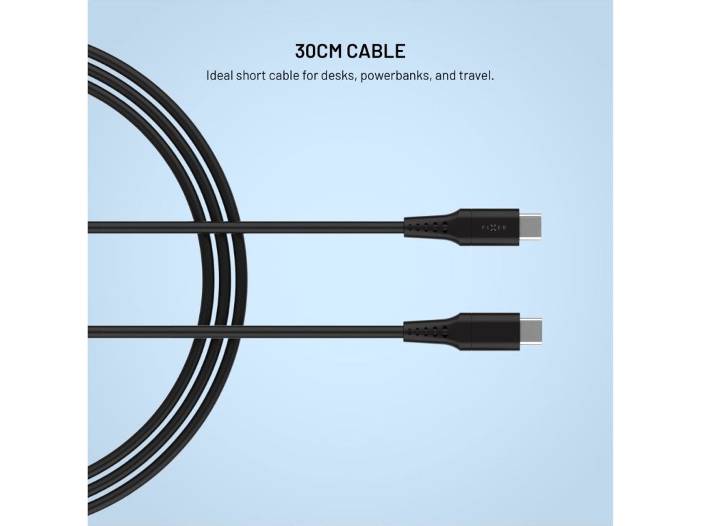 Krátký nabíjecí a datový Liquid silicone kabel FIXED s konektory USB-C/USB-C a podporou PD, 0.3m, USB 2.0, 60W, černý